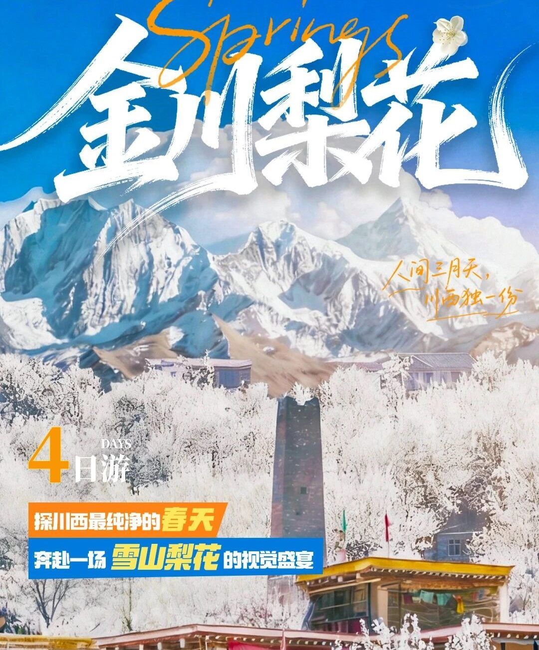 成都出发川西赏花5日自驾游:【金川梨花】理小路-金金线-金川梨花-丹巴-新都桥5天自驾游