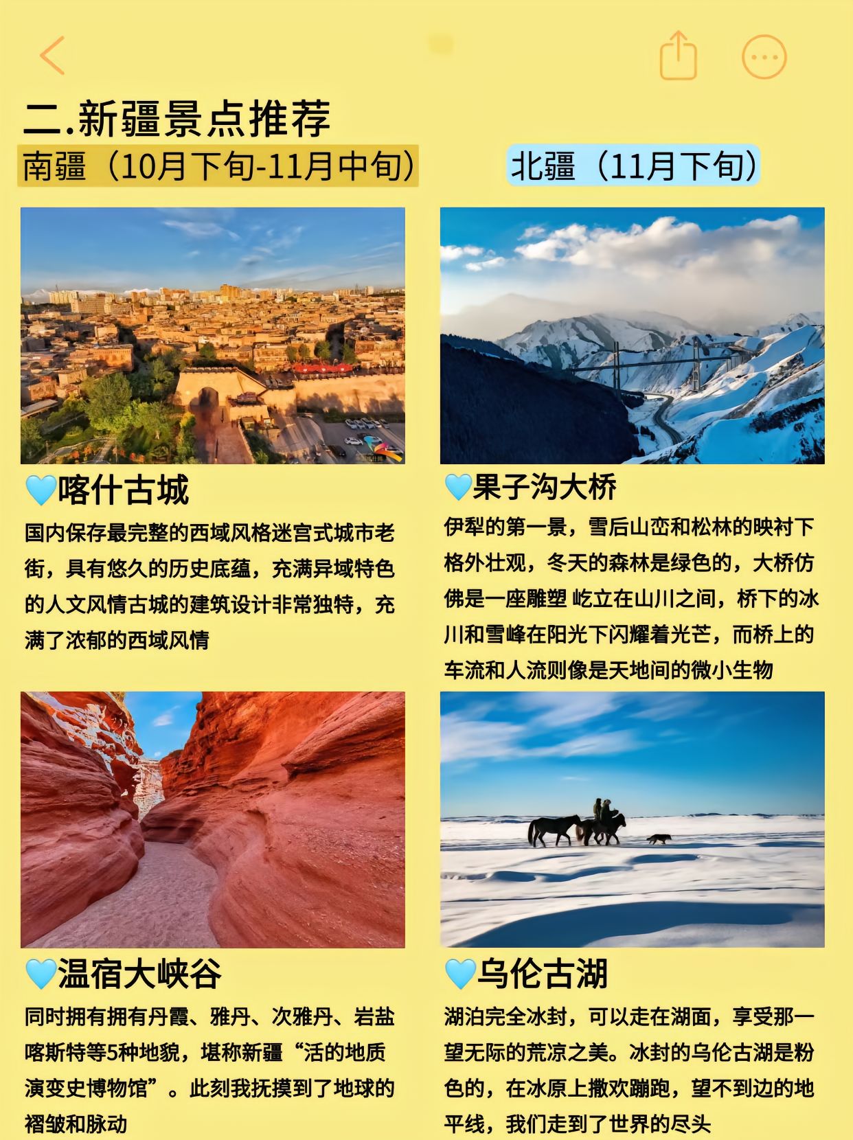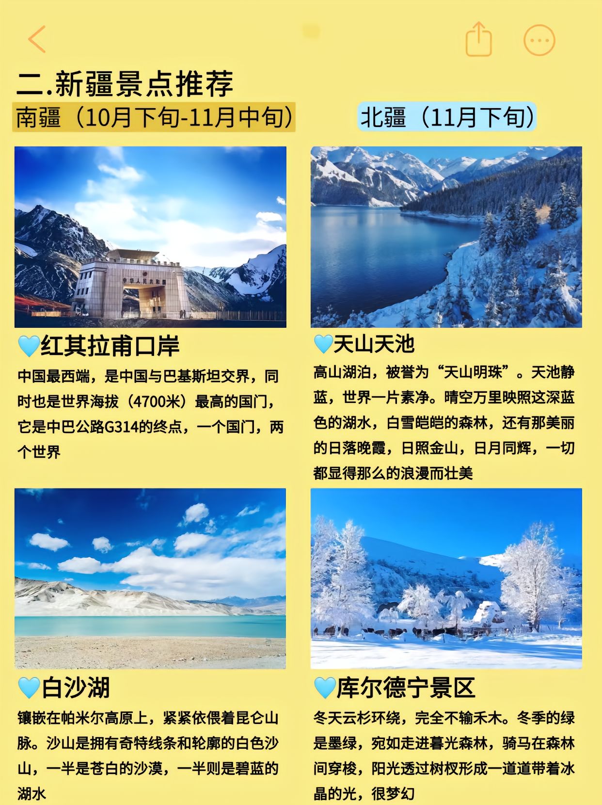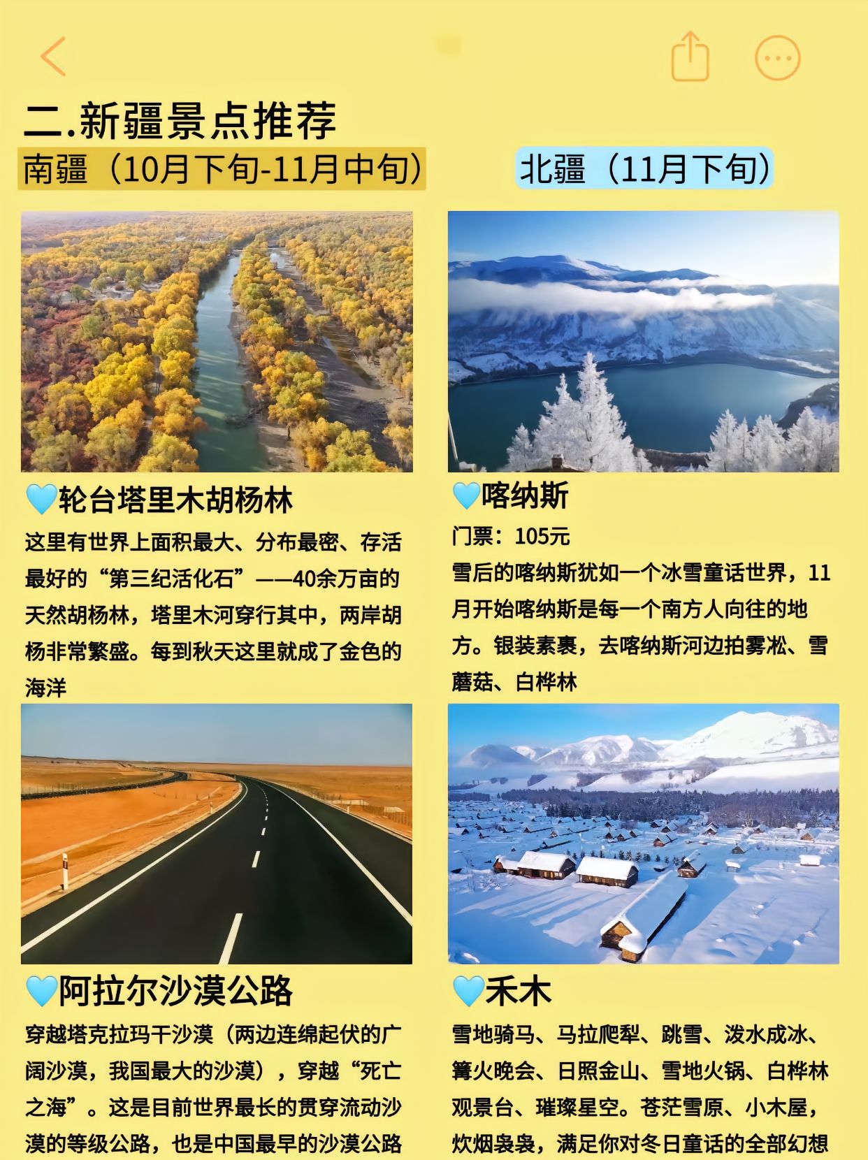 秋冬季节新疆旅行景点推荐: