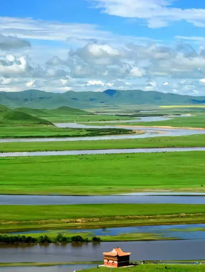 9点早餐后前往神座,沿途欣赏漫泽塘草原风光,有一条美丽的河流将森林和草原分开;