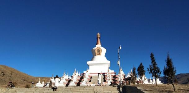 早餐后集合出,途径稻城,打卡【尊胜塔林】,这里又被称为白塔寺,是甘孜州最大的白塔;