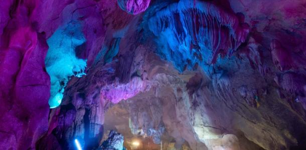先游东宫瑶池【清风仙境风景区】,清风洞窟,属距今二亿多年前古生代时期形成的“喀斯特”溶洞,洞中钟乳、石笋千姿百态,洞外桃花满园。