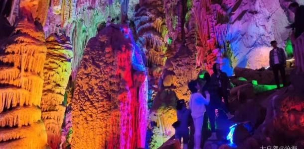 饱餐之后赴双龙溶洞景区参观,洞内亿万年滴水穿岩沉积的钟乳石筝:或如宝剑悬空、或如龙爪凸显、或如深海迷宫、或如浮雕一柱,目睹这些千奇百怪景象,真是让人惊叹大自然的鬼斧神工。