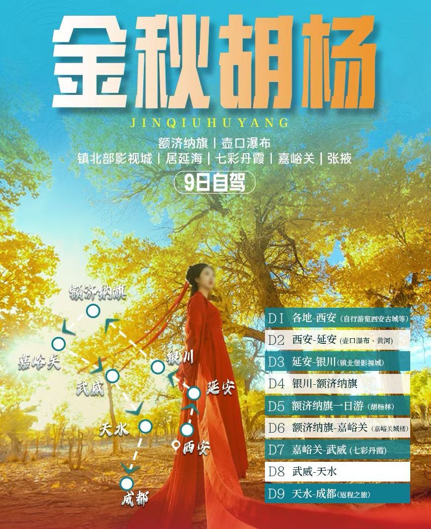成都出发西北额济纳11日自驾游:额济纳旗-壶口瀑布-镇北堡影视城-嘉峪关-张掖丹霞11日赏秋自驾
