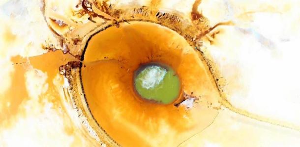 这里是传说中的恶魔之眼 终年不冻,鸟兽不进,寸草不生,地表色彩丰富,犹如一道道伤疤,泉水不断涌出,从高空看就像一只深邃的眼睛。