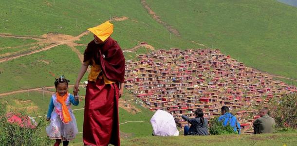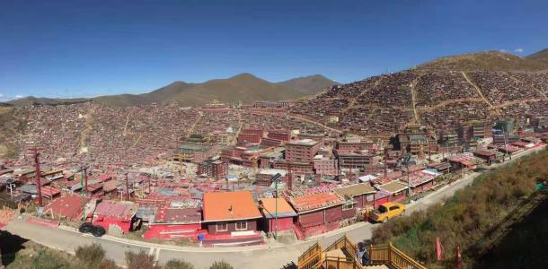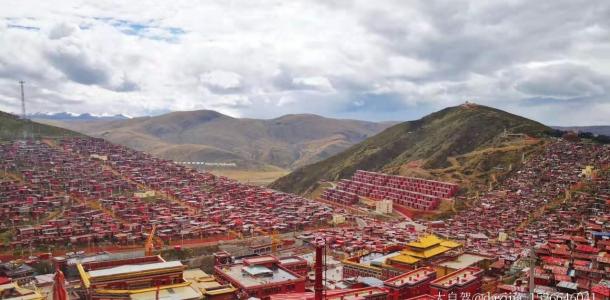 【五明佛学院】自从1980年这里有了世界上最大的藏传佛学院之一的“五明佛学院”, 不到三十年的时间,这里便形成了“色达山河一片红”。